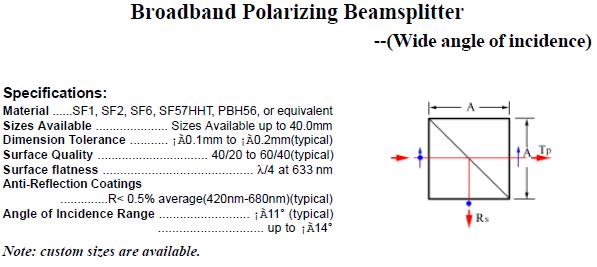 Polarization Beamsplitter;Broadband Polarizing Beamsplitter